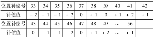在坐标上各部分相对应的补偿位置号处测量补偿值。补偿量如表1所示,将补偿量画在相应的补偿位置处,如图2所示。